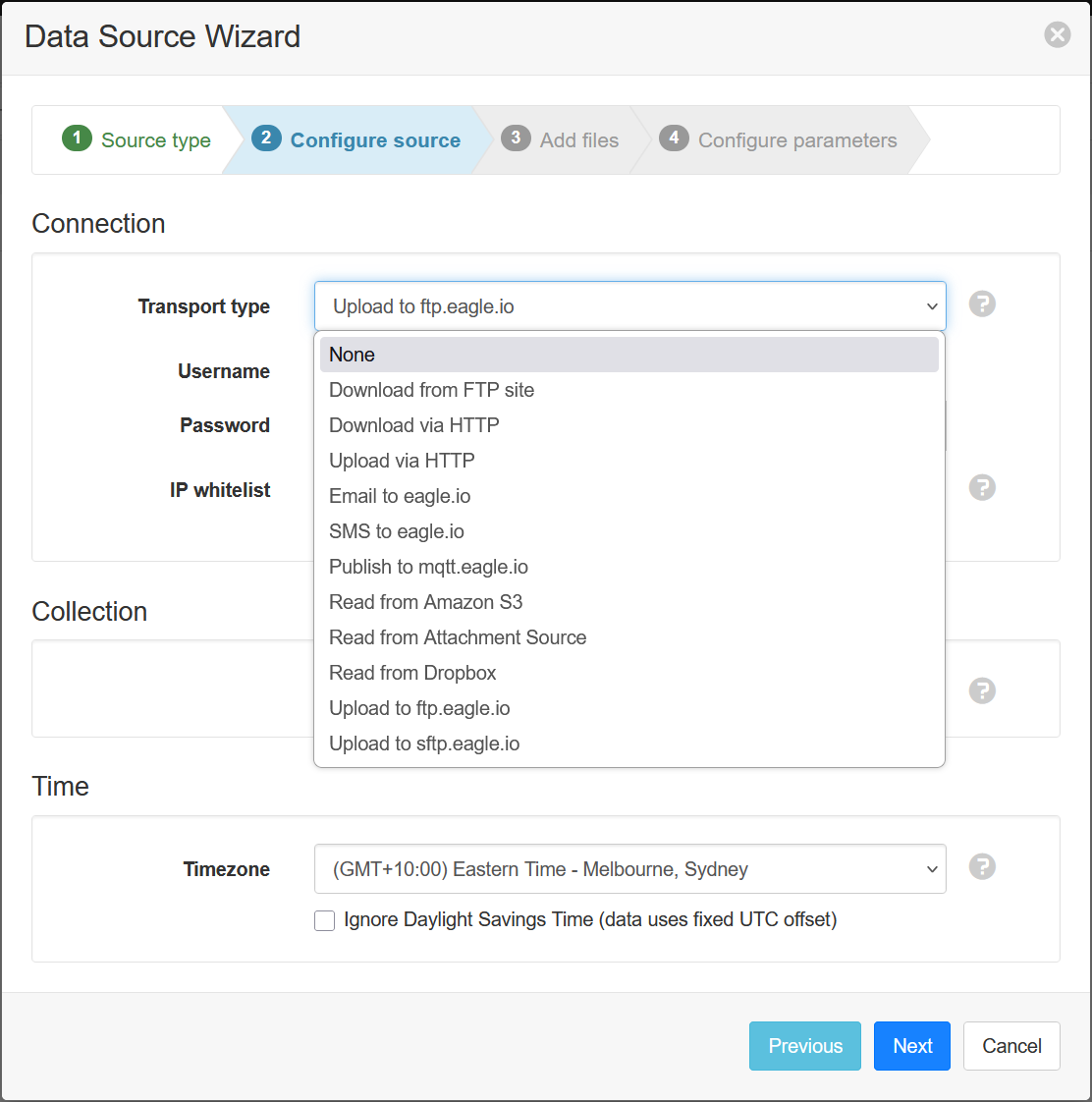 When using any of the client transports, eagle.io acts as the client to read files from another location on the internet, such as your FTP server, a public website, or your S3 bucket.